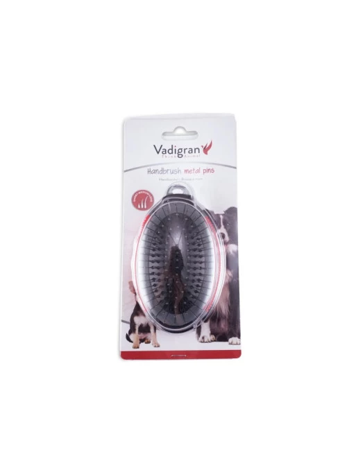 La brosse u00e0 main mu00e9tal pour chien de Vadigran permet d’effectuer le brossage de votre animal, un moment important pour entretenir sa santu00e9 en prenant soin du poil et de la peau.