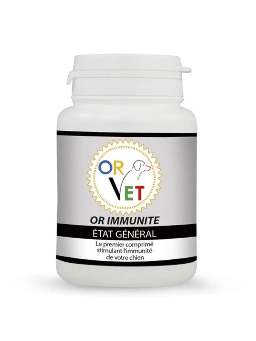 Stimulez le systu00e8me de du00e9fense immunitaire de votre chien gru00e2ce u00e0 l’Or-Immunite 120 comprimu00e9s Or-Vet qui permet d’aider l’organisme u00e0 lutter contre toutes infections ou parasites pouvant l’affaiblir.