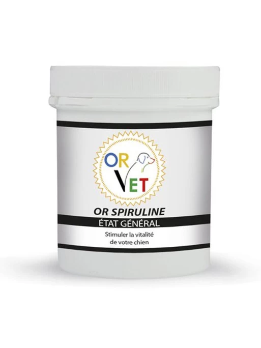 Conu00e7u pour les chiens fatiguu00e9s produisant un effort intense, l’Or-Spiruline 135g Or-Vet vient du00e9toxifier l’organisme pour pouvoir exercer une action revitalisante et remonter leur moral.