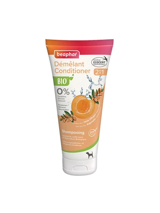 Le 2 en 1 de Beaphar contient de l’Aloe Vera issue de l’agriculture biologique qui hydrate la peau et assouplit le pelage. Il est également enrichie en huile d’Argan et en noyaux d’Abricot, ce qui permet de redonner de la souplesse au poil et facilite son démêlage.
